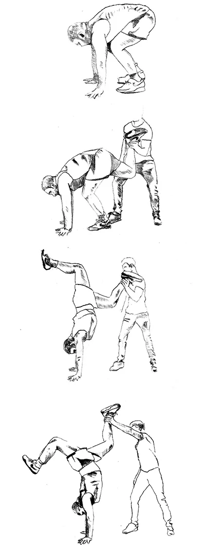 The point in-between the elevated bridge and the supporting position your movement buddy has you in, is the handstand.